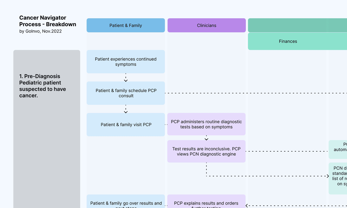 Our research aims to organize cancer journey pain points and underlying problems to support decision-makers in evaluating the potential impact of solutions they devise. This work reflects what our team has learned so far and is not a comprehensive representation of all aspects of the cancer experience. Feedback and suggestions are welcome at CancerNavigator@goinvo.com.