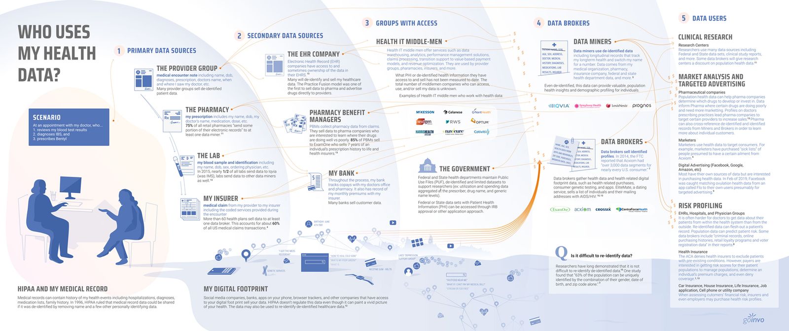 - 5.Leetaru, K. (2018, April 02). How Data Brokers And Pharmacies Commercialize Our Medical Data. Retrieved May 2, 2019: https://www.forbes.com/sites/kalevleetaru/2018/04/02/how-data-brokers-and-pharmacies-commercialize-our-medical-data/#71c8e52911a6